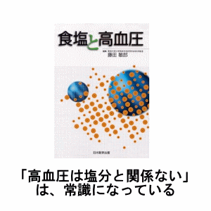 実は「過剰な塩分が高血圧の原因」だという定説には、根拠がありません。これは古い間違った研究結果が、更新されず残ってしまっているだけなのです。(中略)一番わかりやすい事実があります。世界で一番食塩の摂取量が多いのは日本です。しかし、日本は世界で一番長寿の国でもあるのです。この事実を突き崩せる論文は席あのどこにもないのです。(サン松本クリニック院長 松本光正 著 やってはいけない高血圧治療 角川書店 より引用)