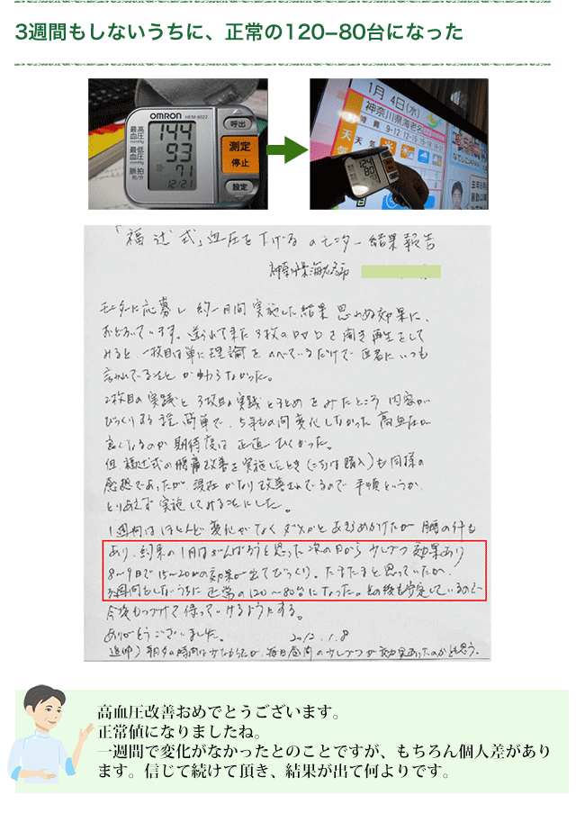 「高血圧で不安な毎日を過ごしている方が一人でも少なくなるよう、願っています」